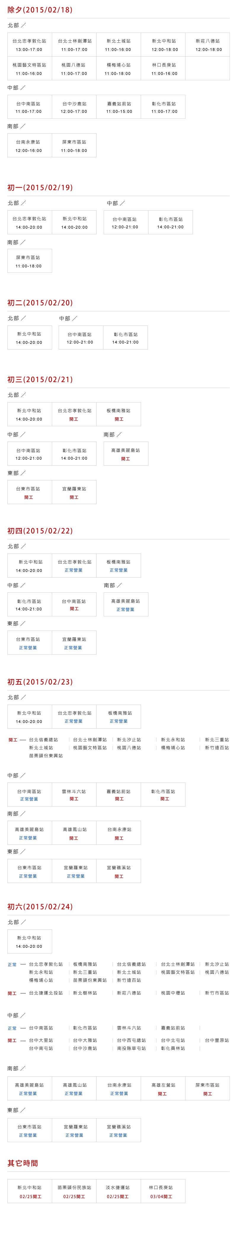 過年囉,飛川團隊為了能為更多的客戶感受到我們的用心,特地整理了下列的分店值班表,讓我們最愛的客戶們不會白跑一趟,空手而回喔!!